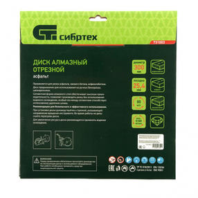 Диск алмазный Сибртех «Асфальт» 731003, ф300 х 25,4 мм, используется для сухого и мокрого реза асфальта, свежего бетона, асфальтобетона, камня, кирпича, абразивных материалов. Он применяется в качестве оснастки для ручных бензорезов или швонарезчиков с посадочным местом 25,4 мм. Диск устойчив к деформациям и выдерживает значительные нагрузки, поэтому имеет высокий рабочий ресурс. Мокрое резание рекомендуется проводить для увеличения ресурса диска. Преимущества: Сегментное строение - в процессе реза обеспечивается отвод тепла и шлама, что повышает производительность диска. Износостойкость - конструкцией круга предусмотрены защитные секторы, предохраняющие сегменты от истирания в месте крепления к корпусу и от налипания асфальтовой крошки на рабочую кромку. Ширина рабочей части 10 мм - производительность остается на стабильно высоком уровне независимо от типа материала (указанного на упаковке). Режущая часть закреплена методом пайки - алмазы надежно удерживаются на диске. 2 874,00 ₽ / шт