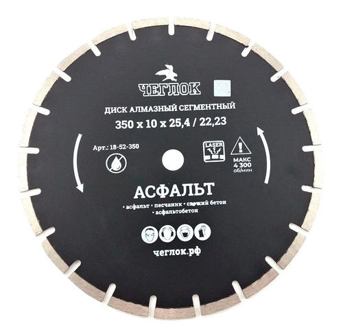Диск алмазный сегмент АСФАЛЬТ "ПРОФИ" 350*10*25,4 ЧЕГЛОК 18-52-350