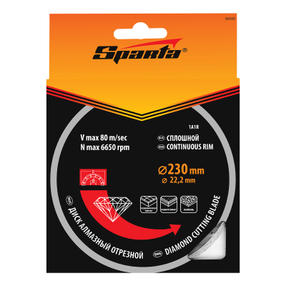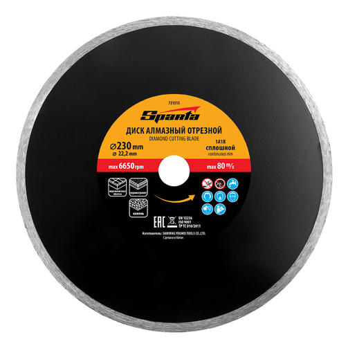 Отрезной алмазный диск Sparta 731515, сплошной, 230 х 22,2 мм, — расходный инструмент для болгарок и плиткорезов, используемый для мокрого резания. Он позволяет выполнить аккуратный рез по керамике, керамограниту и мрамору в бытовых условиях. Рекомендуется применять с использованием водяного охлаждения. 710,00 ₽ / шт