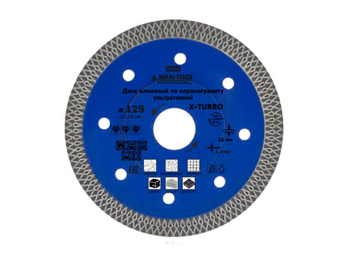 Диск алмазный ультратонкий X-Turbo 125х1,4х10х22,2мм 89674 д/сух. и влажн. резки (100шт/кор)MaxiTool