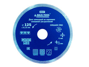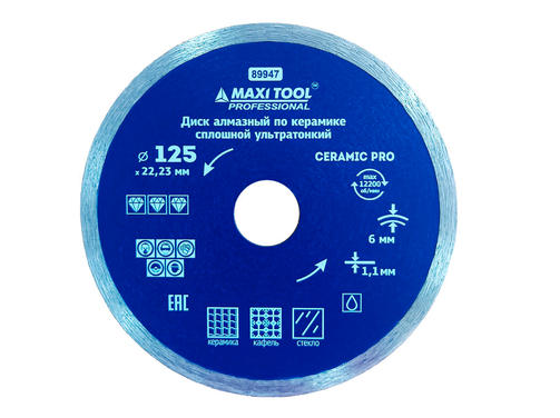 Диск алмазный ультратонкий сплошной PROFI 125x1.1x6x22.23 мм 89947 д/влаж резки (50/100 шт)MaxiTool