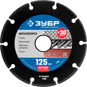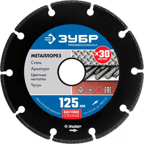 ЗУБР МЕТАЛЛОРЕЗ 125 мм, вакуумное спекание, алмазный диск по металлу, Профессионал (36662-125)