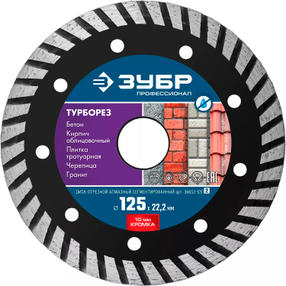 ЗУБР Турборез, 125 мм, (22.2 мм, 10 х 2.4 мм), сегментир. алмазный диск, Профессионал (36652-125)