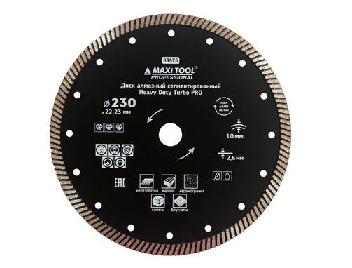 ДИСК АЛМАЗНЫЙ сегментир универсTurbo 230x2.6x10x22.23мм 89975 д/cух/вл резки (25шт)MaxiTool Prof