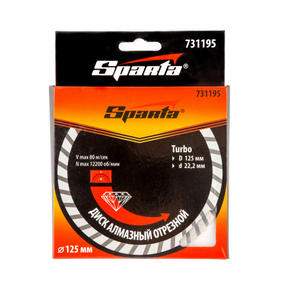 Алмазный отрезной диск Sparta Turbo 731195 для сухой резки, 125 х 22,2 мм, устанавливается на углошлифовальные машинки и предназначен для использования в быту. Он позволяет резать твердые материалы - бетон, железобетон, камень, песчаник. 234,00 ₽ / шт