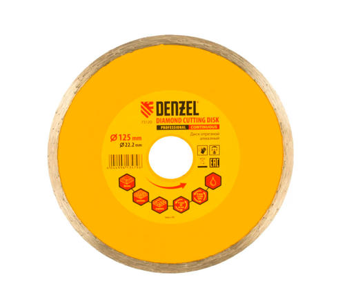 Диск алмазный отрезной сплошной, 125 х 22,2 мм, мокрая резка// Denzel 73120