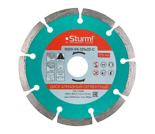 9020-04-125x22-C Алмазный диск, сухая резка, сегментный 125мм Sturm!
