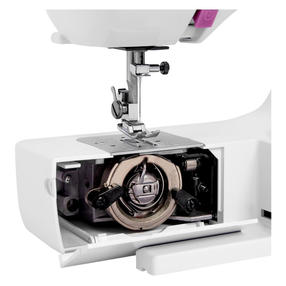 Швейная машина Comfort 250 — электромеханическая модель мощностью 70 Вт. Шнур длиной 1,4 м легко отсоединяется при необходимости. Доступно 17 видов операций, включая оверлочные, потайные и декоративные строчки. Скорость, длина стежка и давление лапки плавно регулируются. Прибор отличается вертикальным расположением катушки, наличием реверса и рукавной платформы. Комфортную эксплуатацию обеспечивают LED-подсветка, интегрированный нитеобрезатель и отсек для хранения аксессуаров. В комплектацию входят вспарыватель и набор игл. Корпус с ручкой для переноски изготовлен из ABS-пластика. Устойчивость гарантируют прорезиненные ножки. Габариты равны 33х25х13 см. Вес — 5 кг. 9 790,00 ₽ / шт