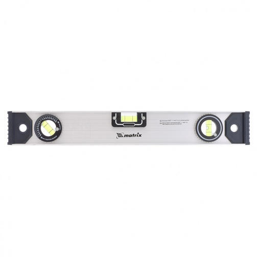 Алюминиевый уровень Matrix «Рельс» 34020 длиной 400 мм имеет 3 глазка: 2 для проверки отклонений от заданной вертикали и горизонтали и 1 поворотный для проверки наклонных поверхностей.Для определения отклонения вертикали 90 градусов необходимо использовать пузырьковую ампулу только в верхнем положении уровня. Только базовая поверхность является рабочей (противоположная ампуле 180 градусов). Преимущества Пластиковые заглушки по бокам корпуса повышают его ударопрочность и предотвращают попадание мусора. Шкала на корпусе позволяет измерить длину или ширину предметов. Погрешность измерений составляет всего 1 мм на метр (0,057 градуса). 580,00 ₽ / шт