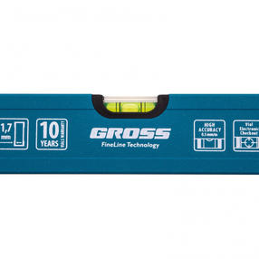 Усиленный алюминиевый уровень Gross 33624 длиной 400 мм, с 3 глазками, поможет найти отклонения от горизонтали и вертикали для повышения точности работы. Этот простой, но незаменимый для любого мастера инструмент пригодится на стройке, при проведении ремонтных и монтажных работ. Уровень с глазком на 45 градусов позволяет измерить угол наклона, поэтому также пригодится при кровельных работах, проверке откосов и различных наклонных поверхностей. Преимущества Противоударная конструкция — колбы из полистирола обладают высокой стойкостью к механическим воздействиям, поэтому инструмент выдерживает падения с небольшой высоты. Защитное порошковое покрытие — инструмент устойчив к воздействию агрессивных сред. Качественное исполнение — уровень изготовлен в Италии на высокотехнологичном производстве, погрешность измерений составляет всего 0,5 мм/м. Для определения отклонения вертикали 90 градусов необходимо использовать пузырьковую ампулу только в верхнем положении уровня. Только базовая поверхность является рабочей (противоположная ампуле 180 градусов). 2 227,00 ₽ / шт