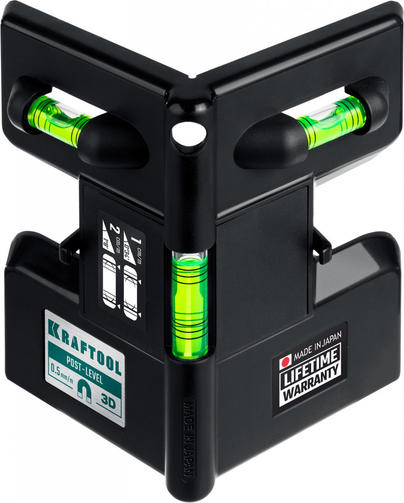 KRAFTOOL POST-LEVEL, 3 глазка, магнитный угловой уровень (34788)
