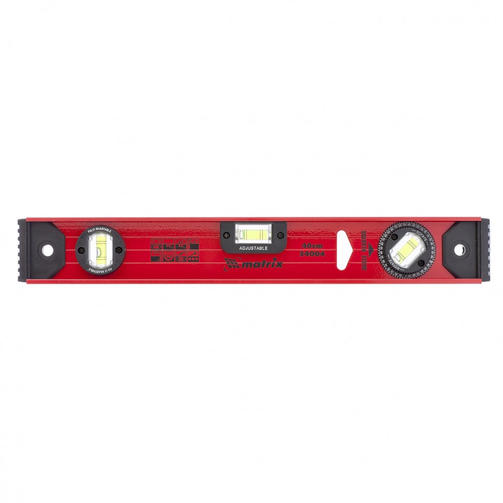 Усиленный алюминиевый уровень Matrix «Рельс» 34010 длиной 1000 мм снабжен 3 глазками для проверки поверхностей относительно горизонтальной и вертикальной плоскостей. Поворотный глазок уровня позволяет выстроить угол 45 градусов. Инструмент поможет выдержать все плоскости идеально ровными, поэтому пригодится строителям, отделочникам, бетонщикам и другим специалистам. Для определения отклонения вертикали 90 градусов необходимо использовать пузырьковую ампулу только в верхнем положении уровня. Только базовая поверхность является рабочей (противоположная ампуле 180 градусов). 958,00 ₽ / шт