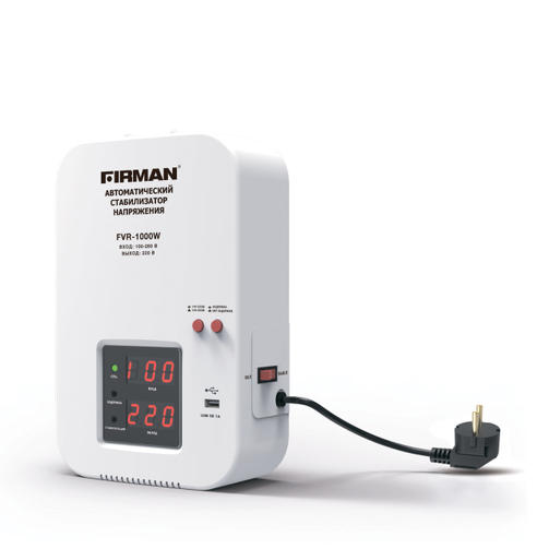Стабилизатор FIRMAN FVR-1000 (однофаз,релейный,наполь.цыфр дисп.свет.индик.1000Вт,100-260В USB 4.6кг