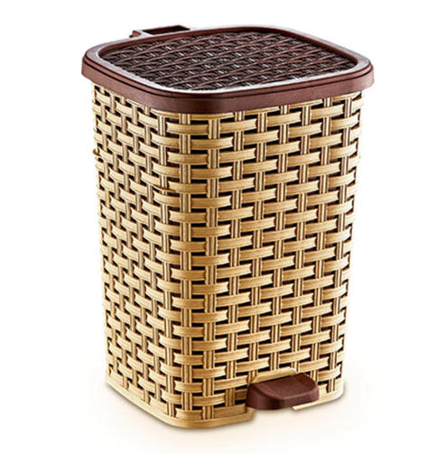 24 01052 Ведро 6л д/мус с педалью "Плетенка" БЕЖЕВОЕ Дуня пластик (8)