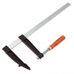 F-образная струбцина Sparta 204405, 400 х 120 х 470 мм, используется в столярном и слесарном деле и позволяет фиксировать заготовки из металла, древесины и других материалов для их соединения или обработки. Деталь помещают между губками, одна из которых подвижна и служит для регулировки величины захвата. Винтовой зажим позволяет прикладывать значительное усилие для надежной фиксации. Защитные накладки предотвращают повреждение детали. Элементы конструкции выдерживают высокую температуру, поэтому струбцина подходит для проведения сварочных работ, при этом пластиковые накладки необходимо снять. Преимущества Штанга изготовлена из стали, поэтому обладает повышенной устойчивостью к изгибанию и выдерживает значительные нагрузки. Оцинкованный винт устойчив к коррозии, что увеличивает срок службы инструмента. Удобная деревянная рукоятка надежно лежит в руке, что повышает комфортность работы. 800,00 ₽ / шт