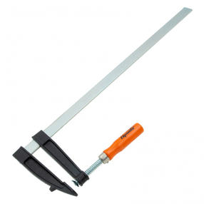 F-образная струбцина Sparta 204415, 500 х 120 х 570 мм, используется в столярном и слесарном деле и позволяет фиксировать заготовки из металла, древесины и других материалов для их соединения или обработки. Деталь помещают между губками, одна из которых подвижна и служит для регулировки величины захвата. Винтовой зажим позволяет прикладывать значительное усилие для надежной фиксации. Защитные накладки предотвращают повреждение детали. Элементы конструкции выдерживают высокую температуру, поэтому струбцина подходит для проведения сварочных работ, при этом пластиковые накладки необходимо снять. Преимущества Штанга изготовлена из стали, поэтому обладает повышенной устойчивостью к изгибанию и выдерживает значительные нагрузки. Оцинкованный винт устойчив к коррозии, что увеличивает срок службы инструмента. Удобная деревянная рукоятка надежно лежит в руке, что повышает комфортность работы. 890,00 ₽ / шт