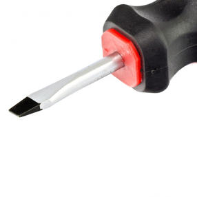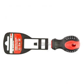 Отвертка Matrix Fusion 11402, SL5,0 х 38 мм, CrV, с 3-х компонентной рукояткой «anti slip», предназначена для завинчивания и отвинчивания резьбового крепежа со шлицем Slotted «минус». Она рассчитана на профессиональное использование для ремонта автомобилей, монтажа конструкций и т.д. Укороченный до 38 мм стержень делает отвертку оптимальной для работы в труднодоступных местах и ограниченном пространстве. Преимущества Стержень и жало выполнены из износостойкой легированной стали CrV твердостью 50-52 HRC, что обеспечивает долгий срок службы отвертки. Намагниченный наконечник позволяет зафиксировать крепеж и направлять отвертку одной рукой, а другой придерживать закрепляемую деталь. Фосфатированный шлиц обеспечивает улучшенное сцепление с крепежом для удобства работы. Трехкомпонентная рукоятка «anti slip» с подпальцевыми выемками и специальными секциями обеспечивает комфортный и надежный хват без проскальзывания. 180,00 ₽ / шт