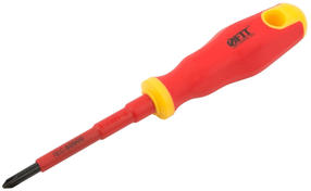 Отвертка изолированная 1000 В, CrV сталь, прорезиненная ручка 4.5х80 мм РН1 55893