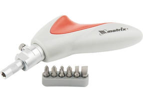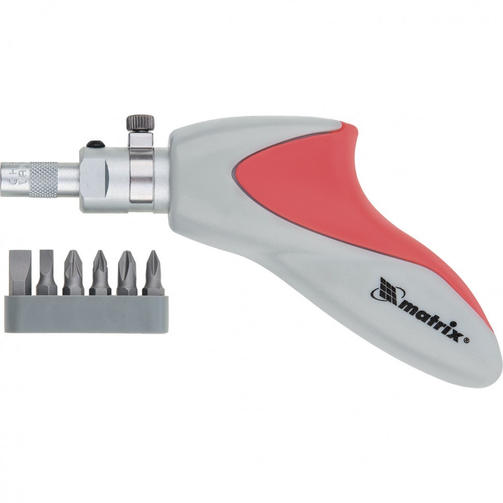 Отвертка реверсивная, пистолетного типа, силовой элемент под ключ, набор бит, CrV, 6 шт.//МТХ 11550