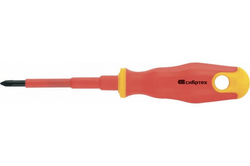 Отвертка диэлектрическая PH1*80mm, CrV, до 1000В, двухкомпонентная рукоятка//СИБРТЕХ 12930
