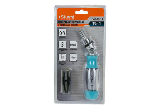 1040-19-13 Отвертка реверсивная 5 положений раб. части 13 в 1 Sturm!
