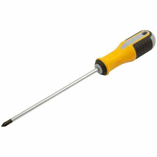 Отвертка "Старт", CrV сталь, прорезиненная ручка 5х150 мм РН1 Материал: жало из хром-ванадиевой стали, магнитный наконечник, пластиковая прорезиненная трехцветная ручка. Упаковка: пластиковый подвес. 200,00 ₽ / шт