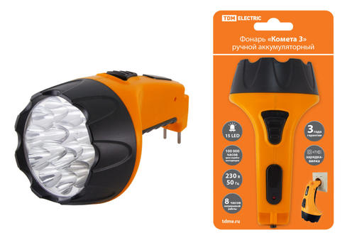 Фонарь "Комета 3" ручной аккумуляторный, 15 светодиодов, 1,1Ач 230В вилка, TDM