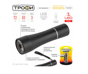 Фонарь ТМВ1 1x1Вт LED алюм. 1хАА блист. Трофи Б0023318