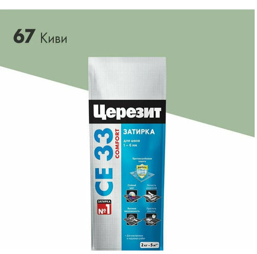 Описание товара Церезит СЕ33 Comfort, цвет киви 67, фасовка 2 кг Церезит СЕ33 Comfort предназначена для заполнения швов керамических и каменных облицовок, устроенных на недеформирующихся основаниях (таких как бетон, цементные стяжки и штукатурки), на полах и стенах внутри и снаружи зданий, при ширине шва до 6 мм. Может применяться в небольших крытых бассейнах. . Обладает противогрибковым действием и пригодна для эксплуатации в условиях периодического увлажнения (в ванных комнатах, душевых, кухнях и т.п.). Угловые, деформационные и примыкающие к санитарнотехническому оборудованию швы рекомендуется заполнять силиконовой затиркой Церезит CS 25. . Затирка приобретает заявленный цвет по истечении 24-48 часов в зависимости от условий окружающей среды после затирания швов, выполненного в соответствии с рекомендациями по применению. Оттенок цвета готовой затирки в шве может отличаться от цвета сухой смеси; обозначенного цвета на упаковке; рекламных образцов. 400,00 ₽ / шт
