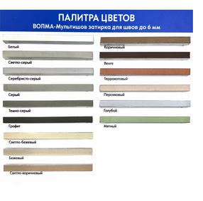 Затирка "ВОЛМА-Мультишов" применяется для заполнения межплиточных швов облицовки, выполненной из керамической плитки, плитки, изготовленной из натурального или искусственного камня, на стенах и полах при внутренних и наружных работах, применяемые при строительстве, реконструкции и ремонте зданий и сооружений. Количество воды на 1 кг сухой смеси: 0,29-0,31 л Количество воды на банку 2 кг: 0,58-0,62 л Время конца схватывания: не более 720 минут Предел прочности на растяжение при изгибе: не менее 2,5 МПа Предел прочности при сжатии: не менее 15 МПа Деформация усадки: не более 3 мм/м Истираемость: не более 1000 мм3 Возможность технологического прохода: через 24 часа Рекомендации Применяйте продукт при температуре от +5°С до +35°С и относительной влажности воздуха не более 80% Не смешивайте «ВОЛМА-Мультишов» с цементом или другими вяжущими Не добавляйте воду в раствор, который начал схватываться Соблюдайте указанную дозировку воды Не используйте для компенсационных и температурных швов на стенах и полах Не смешивайте разные цвета затирки вместе, во избежание отсутствия однородности окончательного оттенка после того, как раствор затвердеет 384,00 ₽ / шт