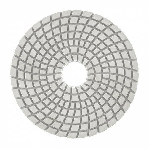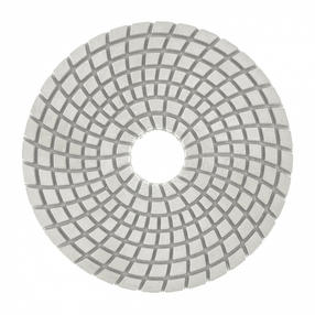 Алмазный гибкий шлифовальный круг Matrix 73510 диаметром 100 мм, с зернистостью P 400, 5 шт. в упаковке, предназначен для мокрого шлифования и используется при проведении строительных, отделочных и художественных работ. Абразив зернистостью P 400 позволяет проводить чистовую обработку, придавать гладкость гранитным, каменным, керамогранитным и мраморным поверхностям. Рабочая часть выполнена из белого термопластика с алмазным напылением и подходит для использования на цветных, преимущественно белых, материалах. Гибкая основа круга облегчает шлифовку рельефных элементов. Круг используется на УШМ с установленной опорной тарелкой для АГШК. Преимущества Высокий рабочий ресурс - в качестве абразива использованы алмазные частицы плотной концентрации, а связкой является устойчивый к трению и нагреву термопластик. Эффективное удаление шлама - на рабочей поверхности имеется большое количество бороздок, благодаря которым она не забивается продуктами шлифования. Быстрая фиксация и замена круга - крепление под липучку позволяет мгновенно закреплять его на опорной тарелке. Удобная комплектация - круги поставляются наборами по 5 штук, которых хватит надолго. 483,00 ₽ / шт