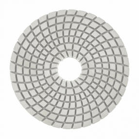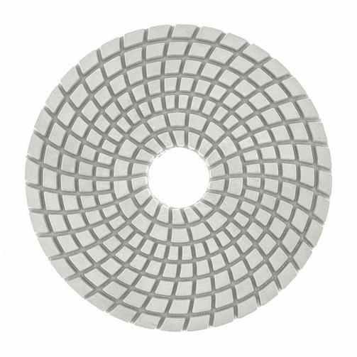 Алмазный гибкий шлифовальный круг Matrix 73512 диаметром 100 мм, с зернистостью P 1500, 5 шт. в упаковке, предназначен для мокрого шлифования и используется при проведении строительных, отделочных и художественных работ. Абразив зернистостью P 1500 позволяет проводить финишную обработку - полировать гранитные, каменные, керамогранитные и мраморные поверхности. Рабочая часть выполнена из белого термопластика с алмазным напылением и подходит для использования на цветных, преимущественно белых, материалах. Гибкая основа круга облегчает шлифовку рельефных элементов. Круг используется на УШМ с установленной опорной тарелкой для АГШК. Преимущества Высокий рабочий ресурс - в качестве абразива использованы алмазные частицы плотной концентрации, а связкой является устойчивый к трению и нагреву термопластик. Эффективное удаление шлама - на рабочей поверхности имеется большое количество бороздок, благодаря которым она не забивается продуктами шлифования. Быстрая фиксация и замена круга - крепление под липучку позволяет мгновенно закреплять его на опорной тарелке. Удобная комплектация - круги поставляются наборами по 5 штук, которых хватит надолго. 450,00 ₽ / шт