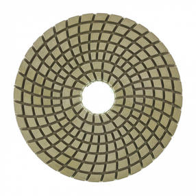 Алмазный гибкий шлифовальный круг Matrix 73509 диаметром 100 мм, с зернистостью P 200, 5 шт. в упаковке, предназначен для мокрого шлифования и используется при проведении строительных, отделочных и художественных работ. Абразив зернистостью P 200 позволяет проводить черновую обработку гранитных, каменных, керамогранитных и мраморных поверхностей. Рабочая часть выполнена из светло-зеленого термопластика с алмазным напылением и подходит для использования на цветных и черных материалах. Гибкая основа круга облегчает шлифовку рельефных элементов. Круг используется на УШМ с установленной опорной тарелкой для АГШК. Преимущества Высокий рабочий ресурс - в качестве абразива использованы алмазные частицы плотной концентрации, а связкой является устойчивый к трению и нагреву термопластик. Эффективное удаление шлама - на рабочей поверхности имеется большое количество бороздок, благодаря которым она не забивается продуктами шлифования. Быстрая фиксация и замена круга - крепление под липучку позволяет мгновенно закреплять его на опорной тарелке. Удобная комплектация - круги поставляются наборами по 5 штук, которых хватит надолго. 500,00 ₽ / шт