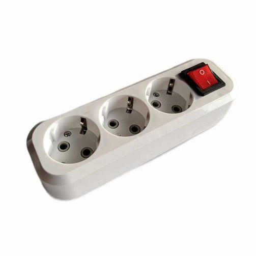 Колодка розеточная LEEK LE SOB 3-х местная, 16А, с заземлением, с выключателем