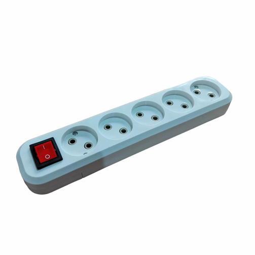 Колодка розеточная LEEK LE SOB 5-х местная, 10А, без заземления, с выключателем