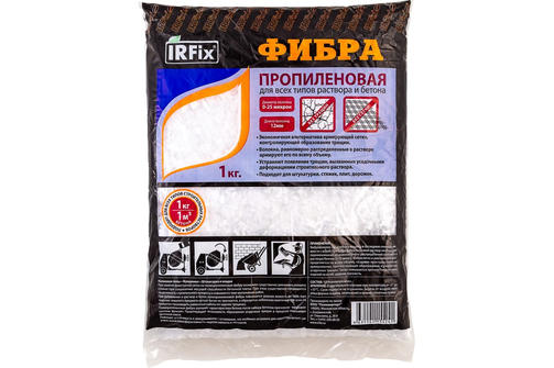 Волокно пропиленовое IRFIX ФибраЛюкс (12 мм; 1 кг) 55241 подходит для всех типов раствора и бетона. Волокна, равномерно распределённые в растворе армируют его по всему объему. Применение фибры снижает вероятность появления трещин как на этапе усадки, так и при дальнейшей эксплуатации. Может использоваться для наливных полов, фундаментов, штукатурки и кладка. Снижает деформацию бетона, ползучесть бетона, уменьшает раскрытие трещин, увеличивает морозостойкость, устойчивость к истиранию, пластичность и вязкость бетона. Область применения: штукатурные смеси и наливные полы, стяжка полов, промышленные полы, железобетонные конструкции, изделия из бетона, тротуарная плитка. 550,00 ₽ / шт