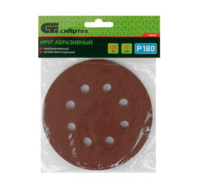 Круг абразивный на ворсовой подложке под "липучку" перфорированный P 180 125мм 5 шт Сибртех 738087