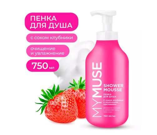 Пенка для душа с соком клубники и молочными протеинами MY MUSE 750 мл