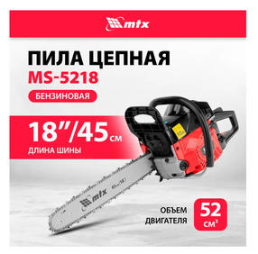 Пила цепная бензиновая MS-5218, шина 45 см, 52см³, 3 л.с., шаг 0,325, паз 1,5 мм, 72 зв MTX 95212