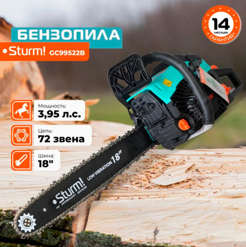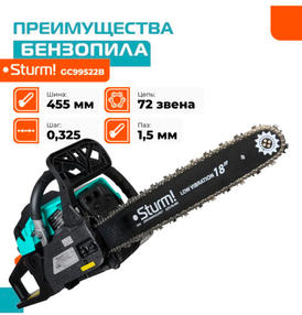 GC99522B Бензопила Sturm! 2.9кВт, шина 18", 72 звена, шаг цепи 0,325"