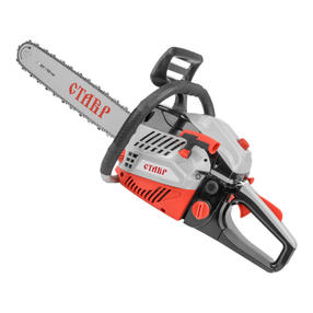 Пила цепная бензиновая Ставр ПЦБ-50/2300 предназначена для реза древесины разных пород. В модели установлен двигатель мощностью 2200 Вт, за счет чего максимальное число оборотов холостого хода достигает 3000 об/мин. Это обеспечивает высокую производительность устройства при обработке материалов разной толщины и плотности. Автоматическая смазка предотвращает перегрев, быстрое изнашивание цепи. Благодаря антивибрационной системе снижается нагрузка на тело во время применения пилы, что оптимально для продолжительного использования. Поддержка плавного запуска обеспечивает стабильную работу инструмента на протяжении срока службы. Пила цепная бензиновая Ставр ПЦБ-50/2300 оснащена тормозом, за счет которого достигается мгновенная остановка режущего элемента. Это упрощает рез заготовок, исключает получение травм в процессе применения модели. Держатель эргономичной формы позволяет с комфортом фиксировать устройство в руках. Тип двигателя: 2-х тактный с воздушным охлаждением Объем двигателя: 55 см³ Мощность: 2300 Вт (3,1 л.с.) Число оборотов двигателя: 2800-3000 об/мин Свеча зажигания: L7T Система зажигания: CDI Тип запуска: ручной стартер Длина шины: 50 см (20”) Шаг звеньев цепи / толщина звеньев / количество: 0,325” / 0,058” / 76 Скорость цепи: 12 м/с Время торможения цепи: < 0,11 с Скорость срабатывания тормозного механизма: 0,11 м/с Праймер Топливо: смесь бензин АИ-92 + масло 40:1 (рекомендуемое масло 2Т API TB, TC или TCS) Смазка цепи: Масло SAE 10W30 или SAE 10W20 Автоматическая смазка цепи Объем топливного бака: 0,55 л Объем масляного бака: 0,26 л Расход топлива: 0,724 л/ч Габаритные размеры: 88х26х30,5 см Масса: 6,7 кг 10 500,00 ₽ / шт