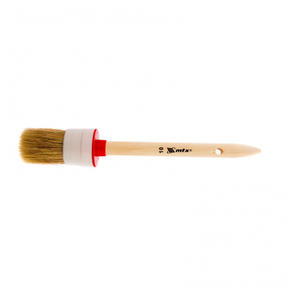 Круглая кисть MTX №10 (40 мм) 82080 с натуральной щетиной и деревянной ручкой пригодится в быту для окрашивания узких длинных поверхностей. Светлая натуральная свиная щетина с добавлением искусственной обладает высокой износоустойчивостью и может использоваться для нанесения красок с содержанием растворителей, а также масляных красок и лаков. Преимущества Щетина двойной выварки обеспечивает высокое качество работы, т.к. не содержит включений жира и мелких частиц грязи. Расщепленная на концах щетина увеличивает способность кисти впитывать и отдавать ЛКМ, таким образом повышается эффективность работы. Пластиковый бандаж обеспечивает надежную фиксацию щетины и не подвержен коррозии. Рукоятка из отборной древесины прошла шлифовку и имеет защитное лаковое покрытие, поэтому с ней комфортно работать. На рукоятке предусмотрено отверстие для подвешивания, что обеспечивает удобство хранения. 90,00 ₽ / шт