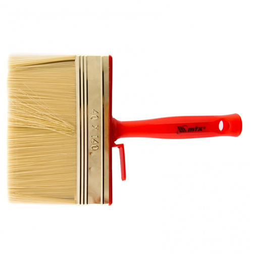 Кисть-ракля MTX 84128, 40 х 140 мм, с искусственной щетиной, пластмассовыми корпусом и ручкой, используется для малярных работ на участках большой площади, поэтому удобна для обработки стен, потолков и фасадов. Подходит для работы с ЛКМ на водной основе, поскольку искусственная щетина не деформируется и сохраняет упругость при контакте с ними. Преимущества Расщепленная на концах щетина обладает повышенной способностью набирать, удерживать и распределять по поверхности лакокрасочные материалы. Инструмент отвечает всем требованиям проведения малярных работ и прослужит долго — щетина устойчива к износу, а металлический бандаж имеет антикоррозийное покрытие и не ржавеет при контакте с ЛКМ и водой. Утолщенная рукоятка обеспечивает удобный захват и позволяет долго работать без усталости. Во время перерыва да кисть можно закрепить на краю емкости с краской при помощи приспособления на корпусе. Отверстие для подвешивания позволяет сушить и хранить кисть в вертикальном положении. 320,00 ₽ / шт