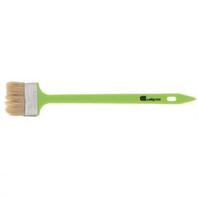 Радиаторная кисть Сибртех 83858 шириной 63 мм, с натуральной щетиной и пластиковой ручкой, позволяет окрашивать радиаторы, трубы, проволочные конструкции. Особенно удобна для покраски углов и стыков пола или потолка со стенами. Удлиненная ручка облегчает проведение малярных работ. Натуральная щетина с добавлением искусственного ворса устойчива к деформации и сохраняет упругость и краскообменные качества при использовании масляных красок и эмалей. Преимущества Натуральная светлая щетина двойной выварки обладает хорошей краскоотдачей и износоустойчивостью, обеспечивая равномерное распределение краски по поверхности. Клей, пластиковые клинья и металлический бандаж надежно скрепляют щетину, что исключает ее выпадение. Кисть набирает и удерживает большой объем краски благодаря расщепленным кончикам щетинок. Инструмент выдерживает многократное использование, т.к. металлический бандаж защищен от коррозии специальным покрытием. Кисть можно сушить и хранить в подвешенном положении благодаря отверстию в рукоятке. 135,00 ₽ / шт