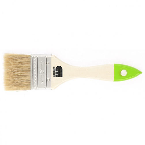 Плоская кисть Сибртех 82263, 50 мм, с натуральной щетиной и деревянной ручкой, понадобится при окрашивании различных поверхностей. Ширина 50 мм оптимально подходит для окрашивания средних по площади участков. Свиная натуральная щетина с добавлением искусственной подходит для большинства красок, в том числе масляных и на основе растворителей. Преимущества Высокое качество щетины достигается путем двойной выварки, за счет чего в ней не содержатся посторонние примеси и жир. Благодаря расщепленной на концах щетине повышается впитывающая способность кисти и улучшается отдача краски. Щетина крепится на рукоятку при помощи металлического бандажа, обработанного антикоррозийным покрытием. Поверхность деревянной рукоятки отшлифована и покрыта лаком для обеспечения комфортной работы и защиты от рассыхания. Кисть можно хранить в подвешенном состоянии благодаря отверстию на рукоятке. 110,00 ₽ / шт
