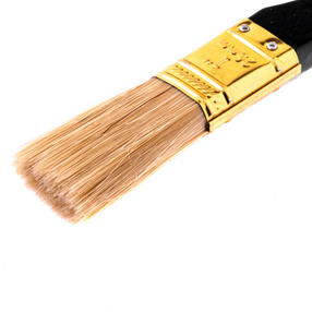 Плоская кисть «Профи» MTX 83150, 1 дюйм, с натуральной щетиной и деревянной ручкой, рассчитана на профессиональное использование при проведении малярных работ. Натуральная щетина с увеличенной плотностью набивки универсальна по своему применению и подходит для нанесения различных типов ЛКМ, в том числе с содержанием растворителей. Кисть шириной 25 мм применяется при необходимости окрашивания тонких труб, решеток, плинтусов и других узких поверхностей. Преимущества Кисть премиум качества легко выдерживает интенсивное и многократное использование. Щетина прошла двойную выварку, такая технология изготовления исключает попадание посторонних примесей на окрашиваемую поверхность. Высокий ресурс кисти обеспечивает бандаж, который предотвращает выпадение щетины. Антикоррозийное покрытие на бандаже не допускает образования ржавчины, поэтому кисть можно мыть и чистить. С помощью расщепленной на концах кисти можно создать ровное и качественное покрытие, т.к. она отличается высокими показателями впитываемости и отдачи краски. Рукоятка кисти выполнена из отборной древесины, которая шлифуется и покрывается лаком для комфортного использования. Кисть оснащена отверстием для подвешивания, что обеспечивает возможность практичного хранения. 105,00 ₽ / шт