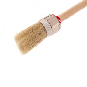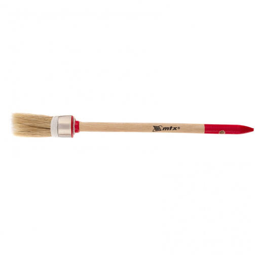 Круглая кисть MTX Профи №2 82041, 20 мм, с натуральной щетиной и деревянной ручкой, используется при проведении профессиональных малярных работ. Рабочая часть изготовлена из натуральной свиной щетины с небольшим добавлением искусственной, это придает ей износостойкость и устойчивость к агрессивным масляным краскам и ЛКМ на основе растворителей. Круглая кисть оптимально подходит для окрашивания узких и труднодоступных участков. Преимущества Щетина двойной выварки не содержит включений жира и мелких частиц грязи, это повышает качество работы. Щетина расщеплена на концах, таким образом достигается высокая впитывающая способность и отдача ЛКМ. Металлический бандаж с антикоррозийным покрытием не ржавеет при контакте с водой, поэтому кисть можно мыть. Кисть с щетиной разной длины повышает точность работы. Рукоятка из отборной древесины отшлифована и покрыта лаком для удобства работы и увеличения срока службы кисти. Отверстие на рукоятке позволяет подвешивать кисть для практичного хранения. 99,00 ₽ / шт