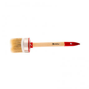 Круглая кисть MTX Профи №16 82053, 55 мм, с натуральной щетиной и деревянной ручкой, используется при проведении профессиональных малярных работ. Рабочая часть изготовлена из натуральной свиной щетины с небольшим добавлением искусственной, это придает ей износостойкость и устойчивость к агрессивным масляным краскам и ЛКМ на основе растворителей. Круглая кисть оптимально подходит для окрашивания узких и труднодоступных участков. Преимущества Щетина двойной выварки не содержит включений жира и мелких частиц грязи, это повышает качество работы. Щетина расщеплена на концах, таким образом достигается высокая впитывающая способность и отдача ЛКМ. Металлический бандаж с антикоррозийным покрытием не ржавеет при контакте с водой, поэтому кисть можно мыть. Кисть с щетиной разной длины повышает точность работы. Рукоятка из отборной древесины отшлифована и покрыта лаком для удобства работы и увеличения срока службы кисти. Отверстие на рукоятке позволяет подвешивать кисть для практичного хранения. 448,00 ₽ / шт