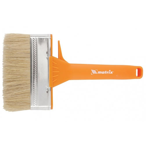 Флейцевая кисть Matrix Color Line «ФАСАД» 83393 толщиной 12 мм и шириной 120 мм предназначена для окрашивания грубых шероховатых поверхностей и обширных участков. Используется при проведении фасадных работ. Рабочая часть изготовлена из высококачественной натуральной щетины (показатель ТОПС не ниже 70%) с расщепленными кончиками, которая набирает и удерживает большой объем краски, — это обеспечивает высокую производительность кисти. Щетина устойчива к воздействию агрессивных сред, поэтому может использоваться с лакокрасочными материалами на основе растворителей. Преимущества Рабочая часть кисти изготовлена из натуральной щетины двойной проварки, обеспечивающей отличное распределение краски по поверхности, за счет чего достигается высокое качество покраски. Щетина закреплена при помощи эпоксидного клея уникального состава, клиньев и бандажа, поэтому не выпадет при длительном контакте с водой или химическими веществами. Кисть прослужит долго, т.к. пластиковые клинья не разрушаются и предотвращают деформацию кисти при замачивании. Защитное покрытие предохраняет бандаж от образования коррозии. Удобная пластиковая ручка позволяет долго работать без усталости. Специальный вырез на рукоятке служит для фиксации инструмента на емкости с краской в т.ч. ванночке, обеспечивая комфорт во время работы. Кисть удобно хранить — ее можно подвесить при помощи отверстия на рукоятке. 391,00 ₽ / шт