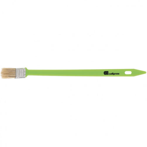 Радиаторная кисть Сибртех 83855 шириной 25 мм, с натуральной щетиной и пластиковой ручкой, позволяет окрашивать радиаторы, трубы, проволочные конструкции. Особенно удобна для покраски углов и стыков пола или потолка со стенами. Удлиненная ручка облегчает проведение малярных работ. Натуральная щетина с добавлением искусственного ворса устойчива к деформации и сохраняет упругость и краскообменные качества при использовании масляных красок и эмалей. Преимущества Натуральная светлая щетина двойной выварки обладает хорошей краскоотдачей и износоустойчивостью, обеспечивая равномерное распределение краски по поверхности. Клей, пластиковые клинья и металлический бандаж надежно скрепляют щетину, что исключает ее выпадение. Кисть набирает и удерживает большой объем краски благодаря расщепленным кончикам щетинок. Инструмент выдерживает многократное использование, т.к. металлический бандаж защищен от коррозии специальным покрытием. Кисть можно сушить и хранить в подвешенном положении благодаря отверстию в рукоятке. 50,00 ₽ / шт